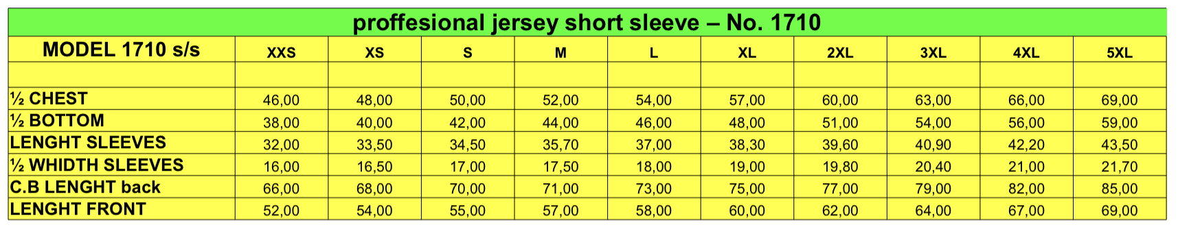 Size Table Shirts